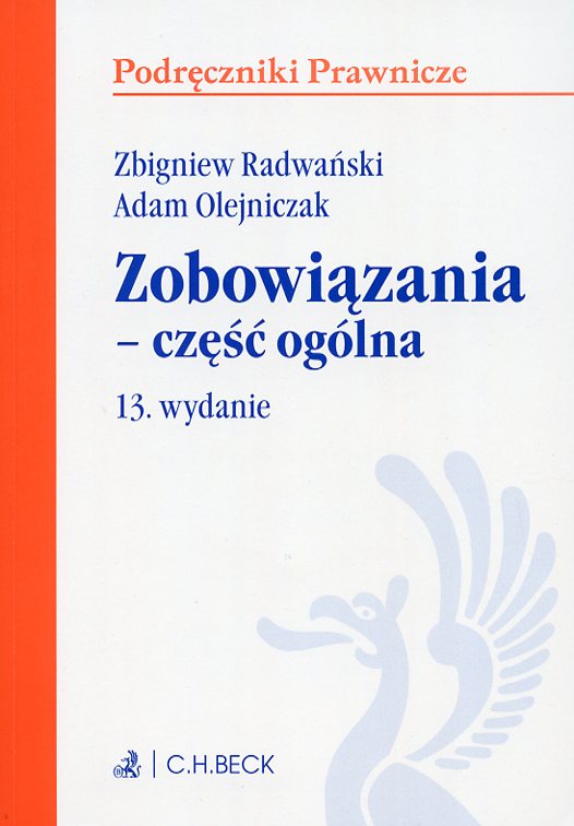 Zobowiązania - część ogólna / Zbigniew Radwański, Adam Olejniczak. - 13. wydanie rozszerzone i zaktualizowane, stan prawny na czerwiec 2018 r. - Warszawa : Wydawnictwo C. H. Beck, 2018. - XXVI, 430 stron : ilustracje ; 21 cm.