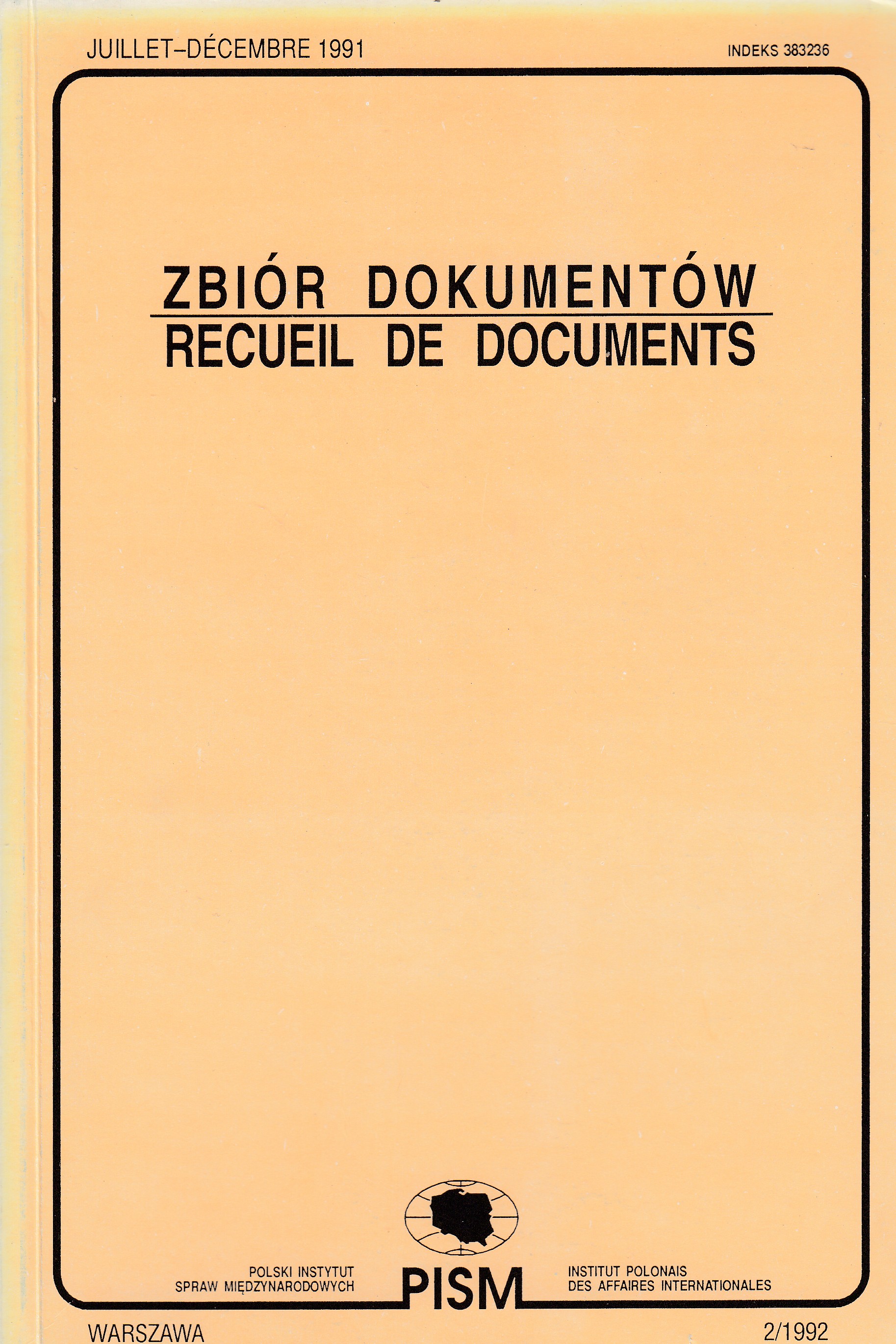 (Zbiór dokumentów = Recueil de Dokuments / Polski Instytut Spraw Międzynarodowych ISSN 0044-1929 ; z. 2/1992)