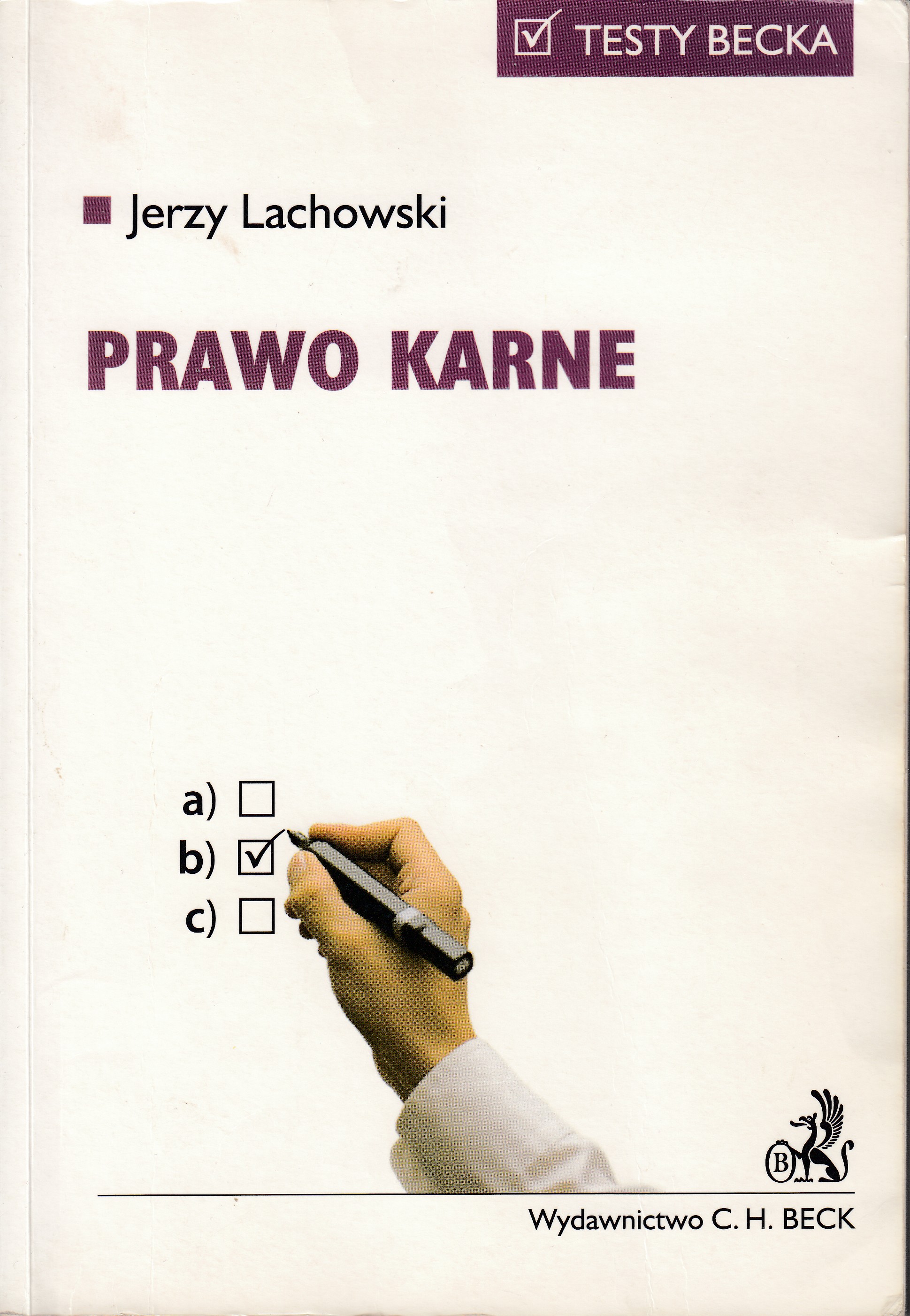 Prawo karne / Jerzy Lachowski. - Stan prawny na dzień 1 stycznia 2010 r. - Warszawa : Wydawnictwo C. H. Beck, 2010. - XIV, 290 s. ; 24 cm.